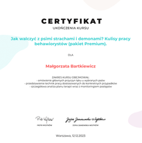 10.2022-06.2023 - kurs dyplomowy 1 rok behawiorysta zwierząt COAPE